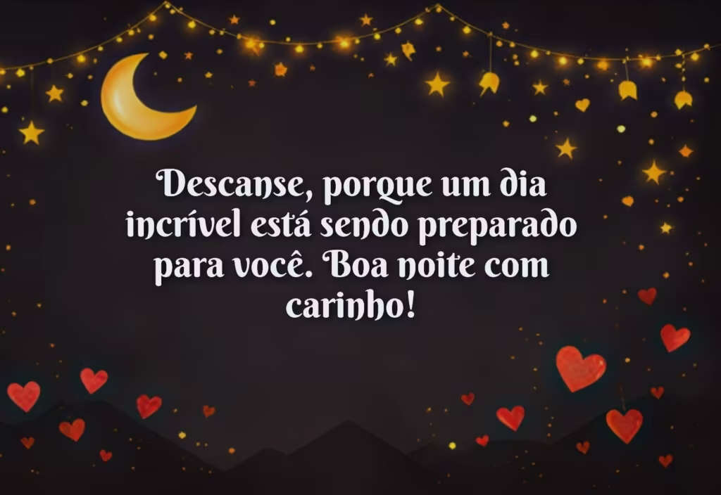 "Descanse, porque um dia incrível está sendo preparado para você. Boa noite com carinho!